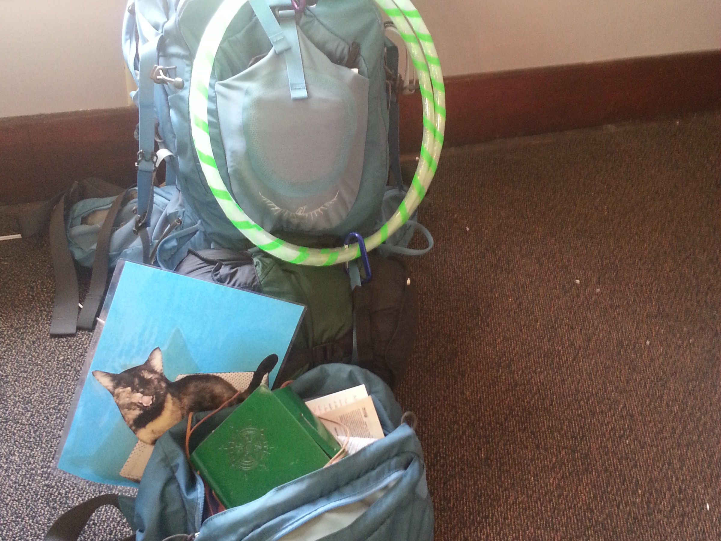 All in my Osprey Xena 70 pack with ,of course, an attached collapsible hula hoop!