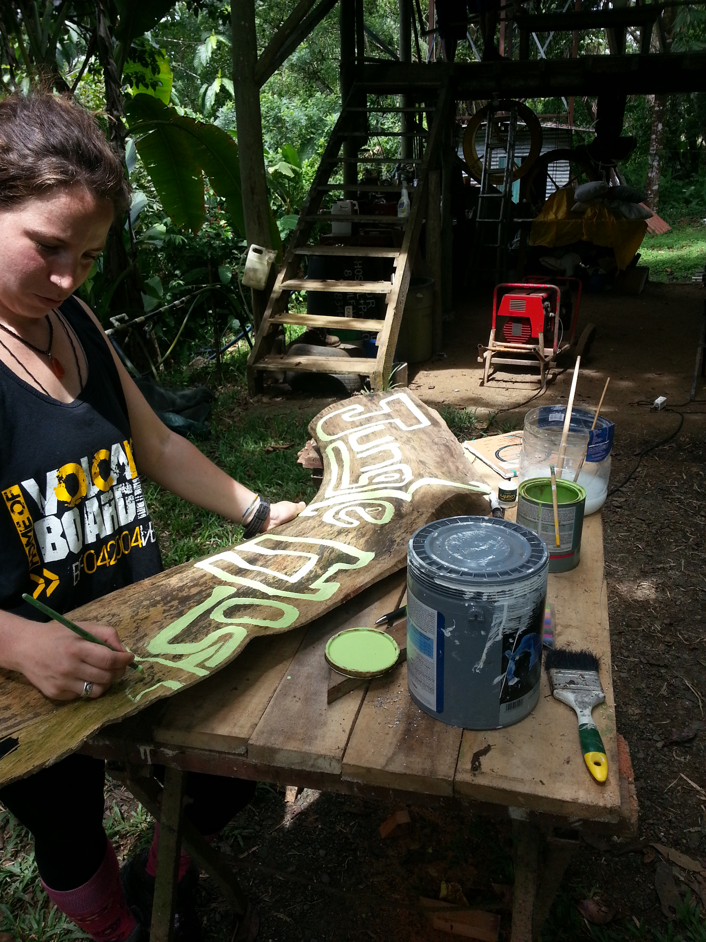 The next day we spent helping Peter in the workshop. While…lost…we wished there were signs marking the trail. So, we helped make them! I painted a “Sendero del Valle” sign close to Peter’s cabin.There was a loop in the trails but only when you retraced your path up the manmade staircase and through Sendero del Valle. Now, that path is marked from both sides.