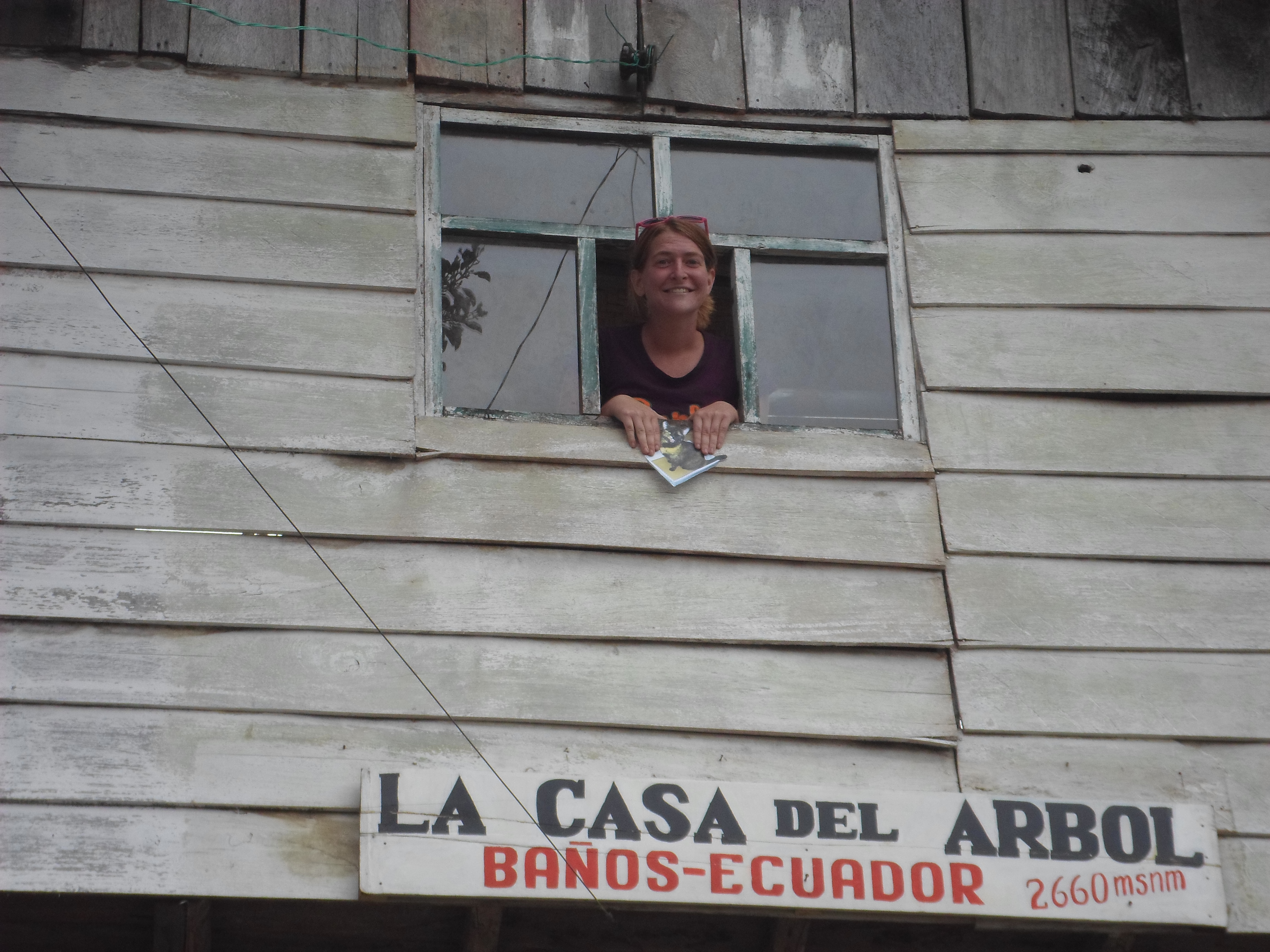 At about midnight after almost 24 hours on buses, we arrived in Baños. A hotel employee was waiting at the bus station, and we found a spot to sleep for $15 total for a private room.