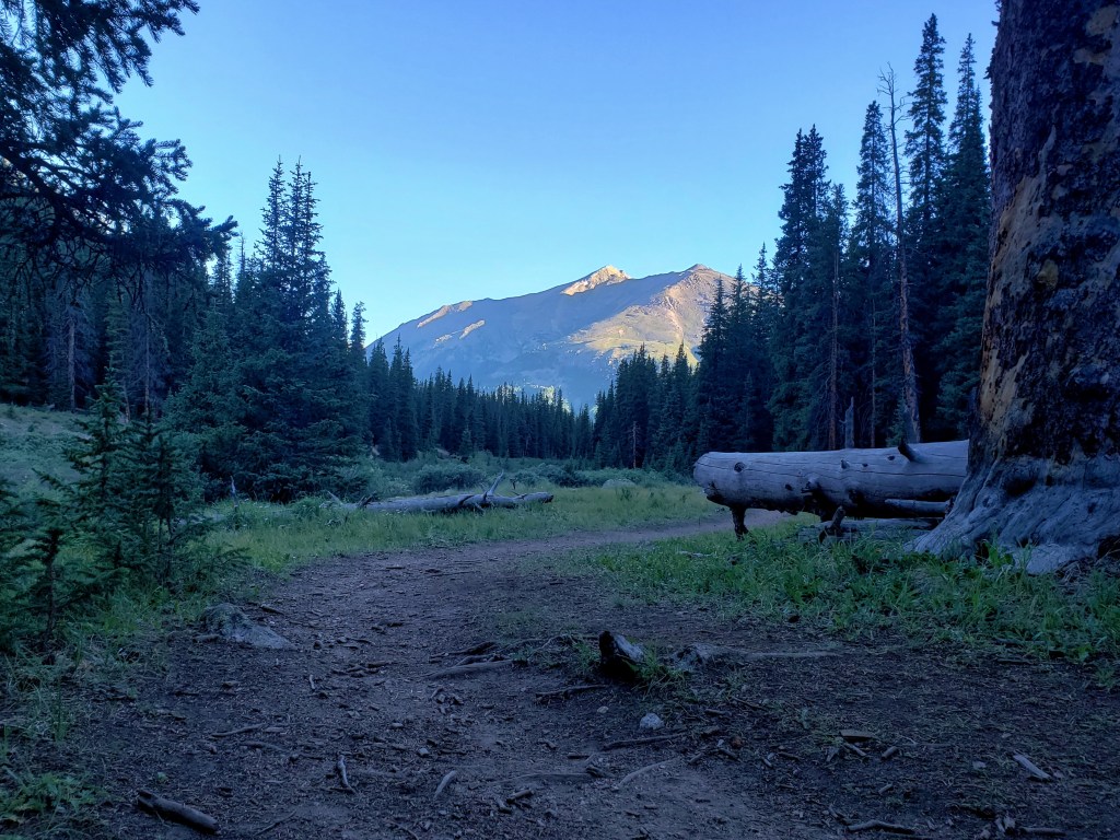 In the morning, we let the alarm lapse a little, packed up our bikes, and started walking at 6:40. We began our hike winding through aspen groves and up rock and dirt stairs. Above treeline, magnificent views of the surrounding mountains were revealed though we still couldn’t tell which was La Plata Peak.