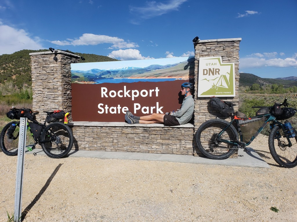 My new chain and cassette were giving me a little trouble, but thankfully there was a bike shop right off the highway that was available to make a few derailer adjustments for me on the spot. A few minutes later, we were back at it and reached Heber City for a quick resupply. From there, we switched to Highway 32 and then some county roads as we headed towards Rockport State Park to rejoin the WWR. Just north of the park, we intersected Interstate 80 and jumped on the gravel rail trail adjacent to the interstate. Our final 8 miles for the day brought us to an RV park right off the interstate that would suffice for the evening’s campsite. We went to bed tired and happy to be back on route.