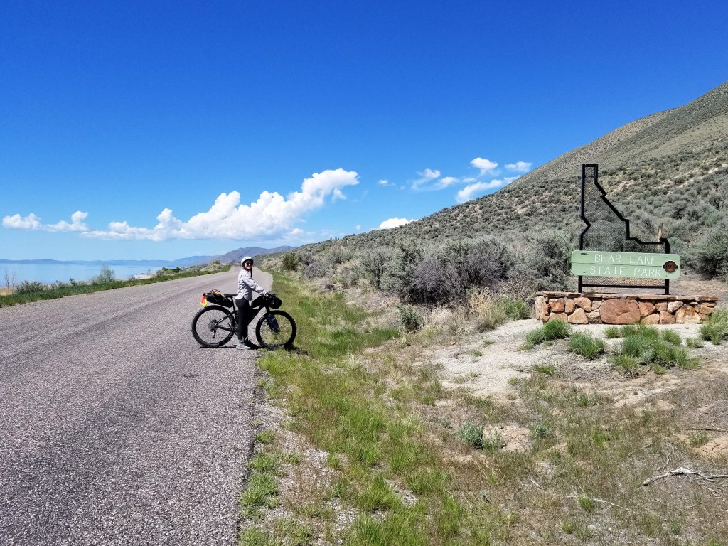 The first 55 miles of our day wrapped up Segment 5 at the UT / ID state line at beautiful Bear Lake. We had an additional 6 miles of riding adjacent to the lake in Idaho before the route took us east and up into the mountains for a late afternoon climb.