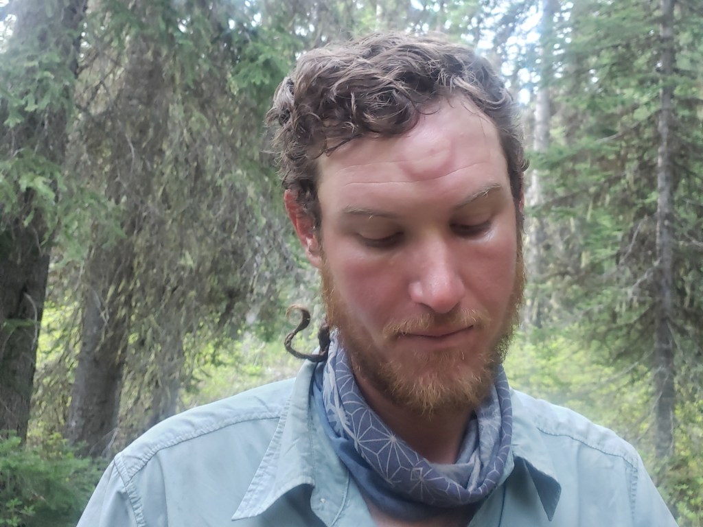 With properly taped feet, we left Eureka, MT, and continued west on the PNT. Our first 16 miles of the day was road walking, a mix of dirt and pavement. Road became trail after crossing the Kootenai River, and we started a steep 4000 ft climb immediately. It was a steamy afternoon which left us drenched in sweat as we climbed up the appropriately named Thirsty Mountain and approached the lookout tower. We took a quick break to dry off and enjoy the views and continued a few more miles to camp. Just before heading to bed, a black bear walked by near our camp, but thankfully it spooked easily once it heard us.