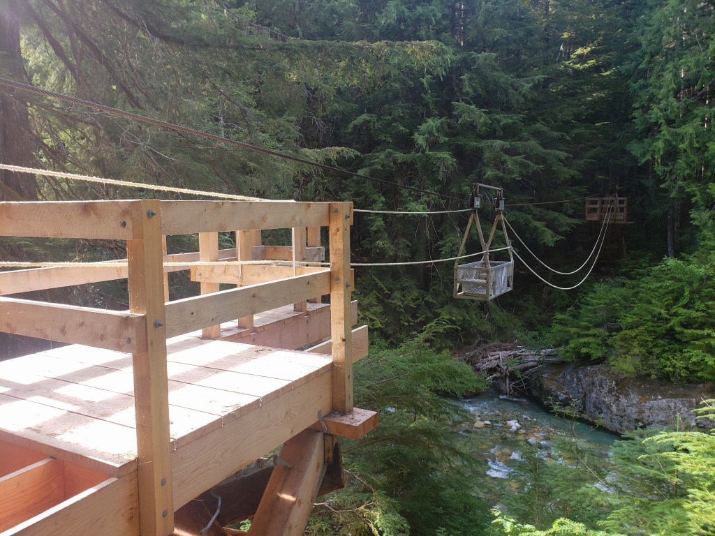 Endless views of mountain ridges surrounded us, but the real star of the show was the Challenger Glacier. We took a long lunch feeling little in the presence of the massive hanging glacier. As hard as it was to pull ourselves away, we knew we still had work to do. We began a big descent down the other side of Whatcom Pass and continued down the PNT. In the late afternoon, we got the fun treat of getting pulled across the river in a cable car. Our final challenge of the day was another big climb up Hannegan Pass, again impossibly steep, which left our shirts drenched in sweat as we finally arrived to camp completely wiped from 10,000 feet of climbing throughout the day. Just before camp, we exited the official boundary to North Cascades NP.