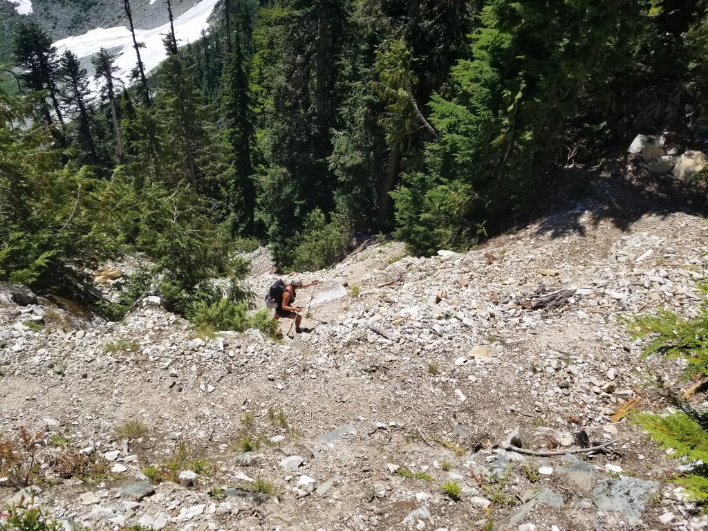 Through a series of bus connections and a hitch, we made our way back to trail right where we had left off. Our first nine miles was gradually up forest service roads until we suddenly hit a trailhead swarmed with cars and people. From here, mountaineers can reach the route to summit Mount Baker, a popular weekend trip. We continued climbing towards Bell Pass taking in incredible views of the towering volcano. Past Bell Pass, the crowds thinned to pretty much just us as we continued on the PNT. We ended our relatively easy 20 mile day at Pioneer Camp. This isn’t the official end of Section 7, but I feel like it should be as we left the North Cascades and beautiful Mount Baker behind us.