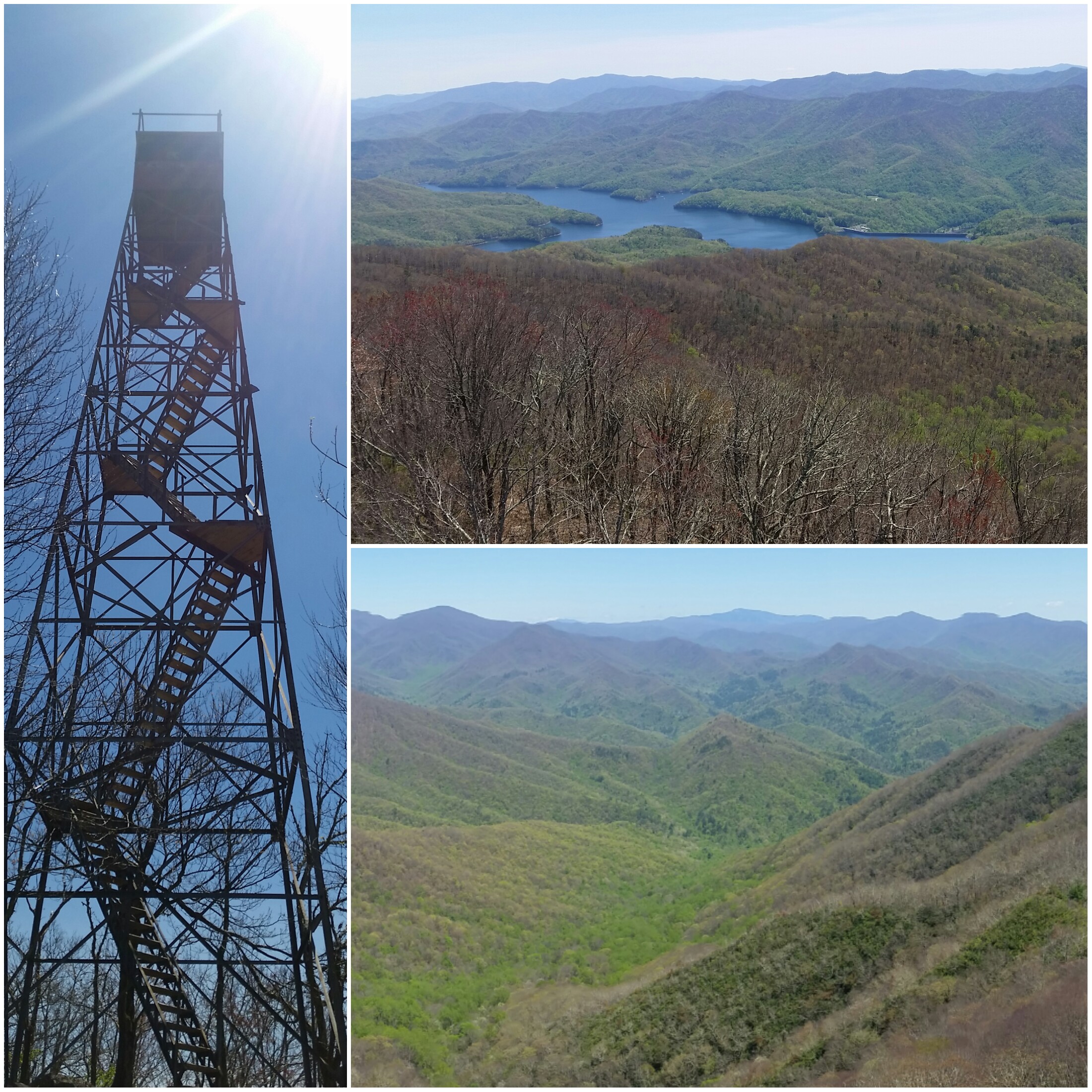 After about 5 miles of climbing, we reached Shuckstack fire tower. Fellow hiker Rainman, BigFoot, and I dropped our bags eager to see the views of The Smokies.