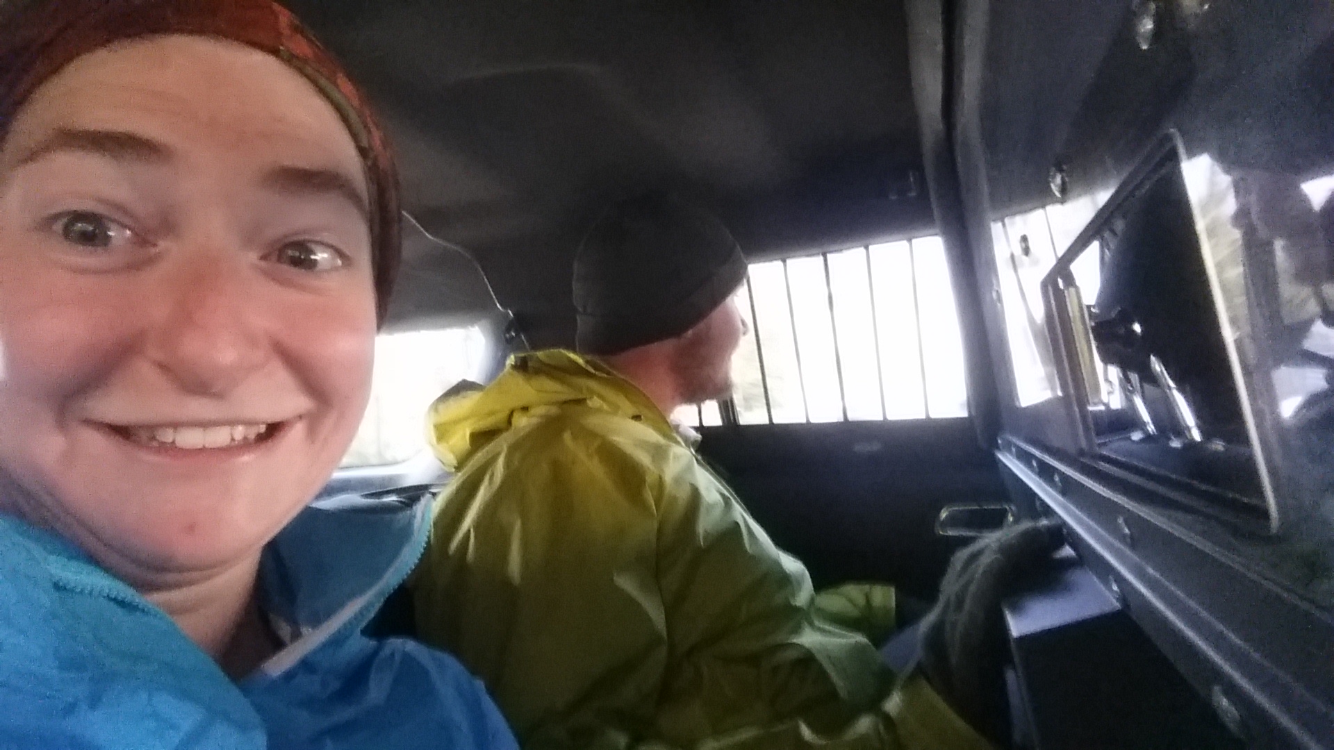 Day 6. We left Helen in the morning and tried our thumbs again to get back to Unicoi Gap. A cop spotted us and pulled over. At first, I was concerned we were in trouble. However, he offered us a ride to the city limits. We had to sit in the back though…