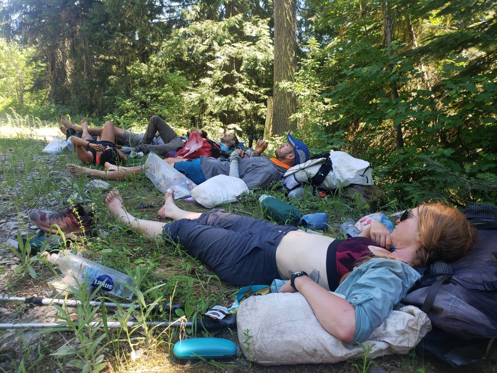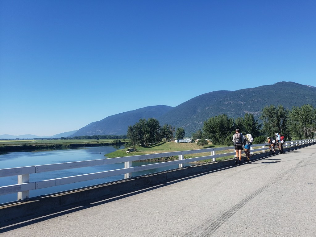 Our new friend Frazier arrived at our hotel for a 9:00 am pickup, and we headed 24 miles down the road. We hopped out with light packs and headed eastbound down the pavement that would lead us back to Oroville. The walking was easy, and everyone was in the mood to walk fast and return to our air conditioned room. After a couple hours, we wound our way around beautiful Lake Palmer and were called over to have lemonade and cookies on a local’s porch. We said our thank yous trying to keep our break short and continued pounding pavement. The sun was relentless and the pavement radiated heat as we walked. We took a quick break around 3:00 to get out of the sun by the Similkameen River, but didn’t linger too long. Around 4:20, Frazier drove by in his truck with cold water which was the perfect motivation to get to town faster. Our pace was upwards of 3.5 mph as we pushed back to our cozy motel room. At 5:40 we returned to Oroville thrilled our scheme worked out and the 24 mile road walk was behind us.