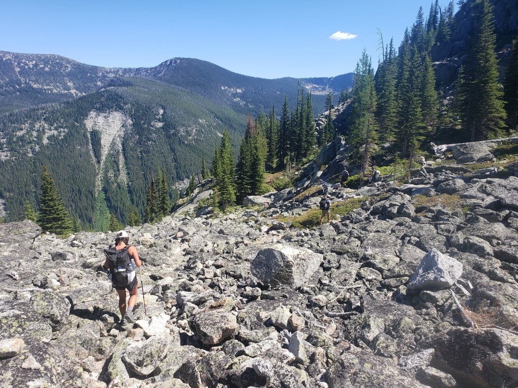 Wow, this section had some insanely trying obstacles and challenges in and of itself without the heatwave adding another layer of difficulty. Leaving Bonners Ferry, our first day of this section featured over 9000 ft of climbing, a majority of which was done through a burn area with no shade while temperatures exceeded 100ยฐF. The following day, we all agreed, was one of our most challenging days of our hiking careers as we bushwhacked 8 miles at 1 mile per hour. We exited that stretch with torn clothing and shoes, a snapped trekking pole, cuts, bruises, and sweat drenched clothing. After the bushwhack, we were treated to a lovely section of easy trail though old growth forest as we walked by Upper Priest Lake. The magic ended as we headed towards miles upon miles of forest service roads, taking long afternoon siestas in an attempt to survive the heat.