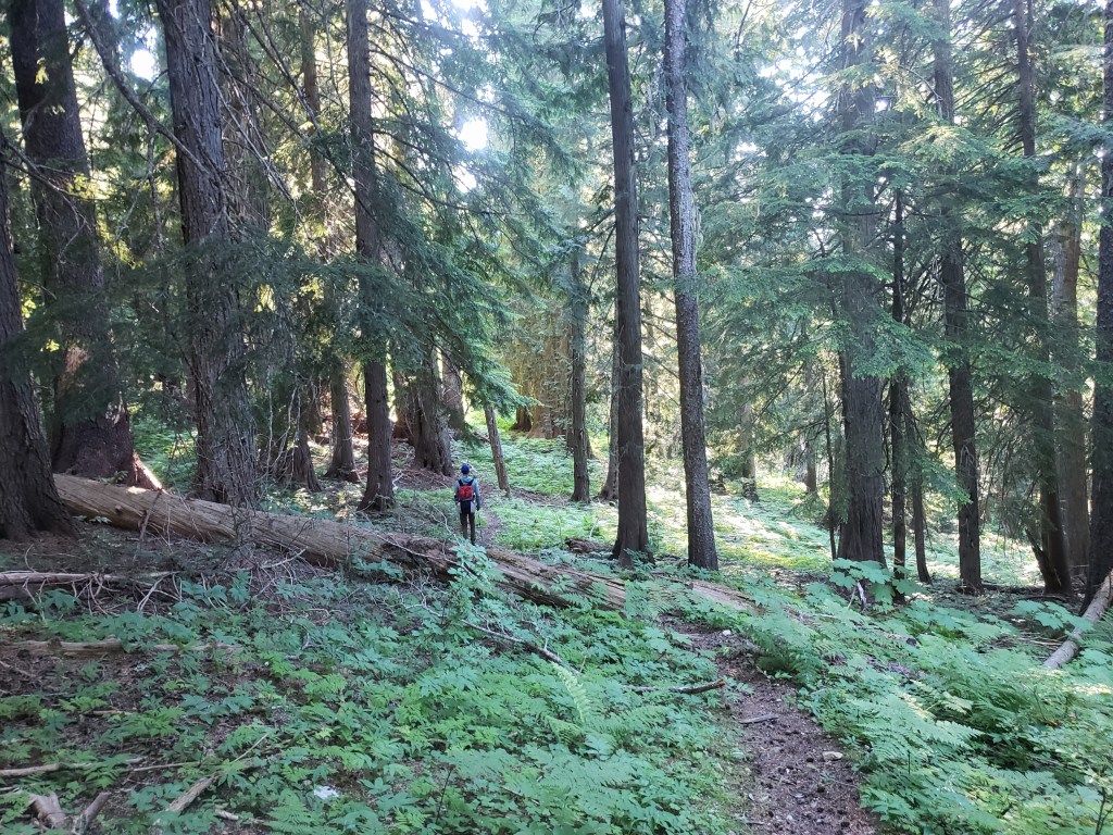 Our morning began early, and we resumed road walking a mix of dirt and overgrown decommissioned forest service roads. After a total of about 60 miles of road walking over the past couple days, we were excited to reach single track despite being in a burn area. The Pacific Northwest Trail coincides for a stretch with the Kettle Crest National Recreation Trail on the east side of Republic. We welcomed the overcast sky and temperatures in the high 70s as we walked through the burn area which provided no shade. In the late afternoon, we finally walked into intact forest as we rode the ridge with incredible views of the Kettle River Range.