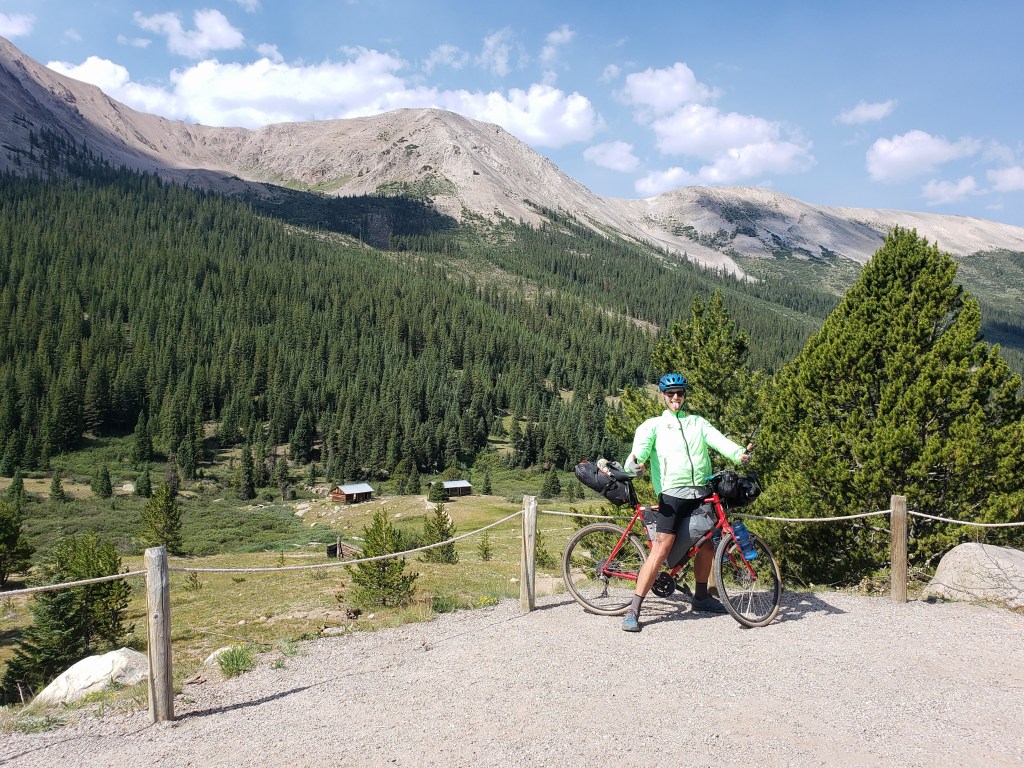 We left Carbondale in a smoky haze and took the Rio Grande bike path that connects the Roaring Fork Valley all the way to Aspen. The ride was pleasant and well graded. We had a steady cruise to town passing Capitol Peak in the distance as we rode. We stopped briefly in Aspen for lunch and a small resupply, then the challenging part of our day began. From town, we had 20 miles and 4000 ft of gain to grind out on the narrow highway to the top of Independence Pass. We sank into a slow and steady pace while cars buzzed around us. We took breaks often grateful for the overcast sky.