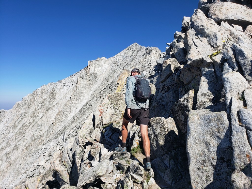 After enjoying the summit, it was time to head back down the mountain. The only thing on my mind was recrossing the knife edge, but knowing I had already done it once helped calm my nerves a little.