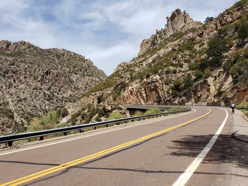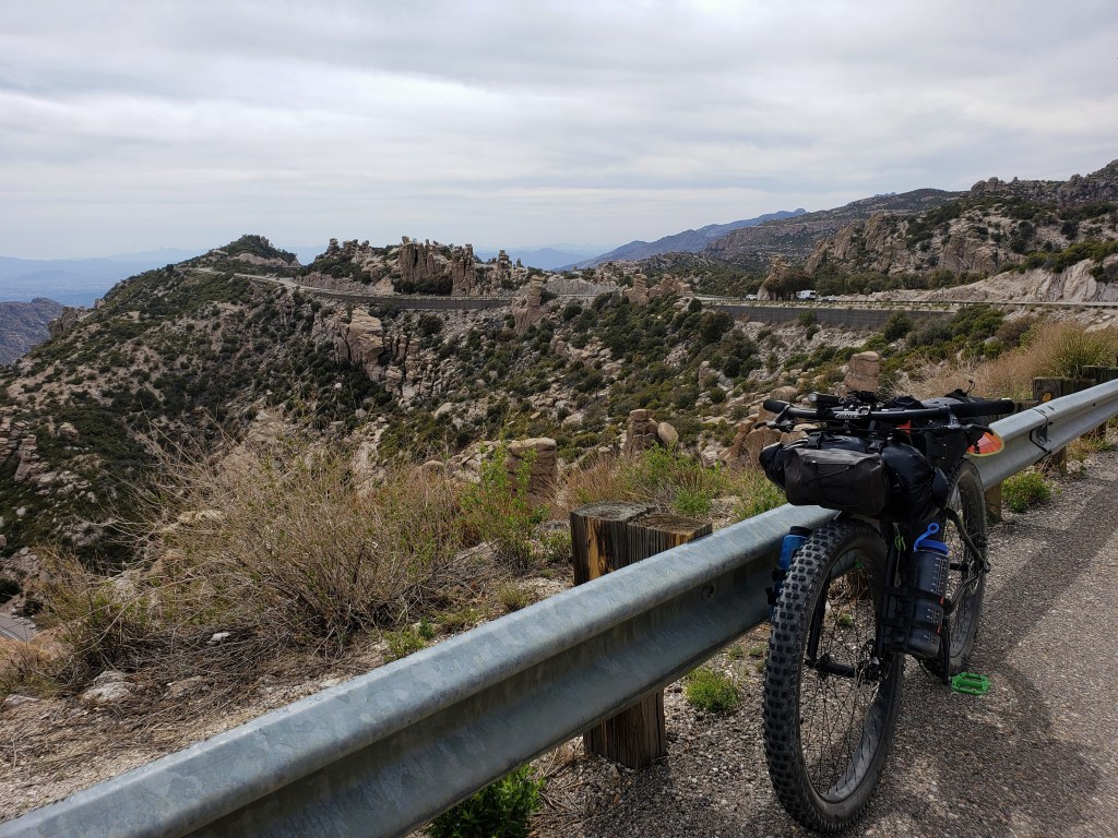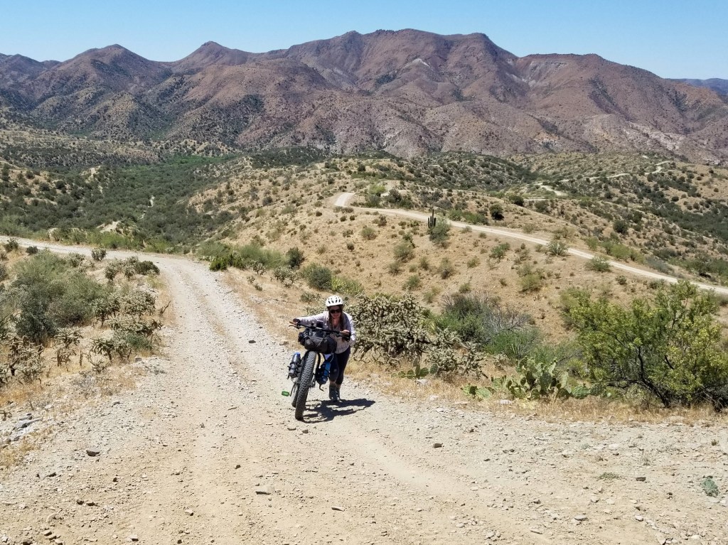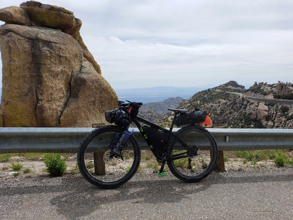 We awoke knowing we had a big day ahead of us – climbing over 6000 ft to the top of Mount Lemmon. We made a quick stop in the outskirts of Tucson to resupply and headed out for our big climb. Thankfully, we met Shelby, a cyclist turned cyclist shuttler for the day, who let us pump up our tires since the ride up was on pavement.The slog was slow and steady hovering around 90° to start and shedding about 3 degrees with every 1000 ft we climbed. Depending on the grade of the road, we averaged between 3-5 miles per hour for about 8 hours. With show tunes in my ear, I really didn’t mind the slog.