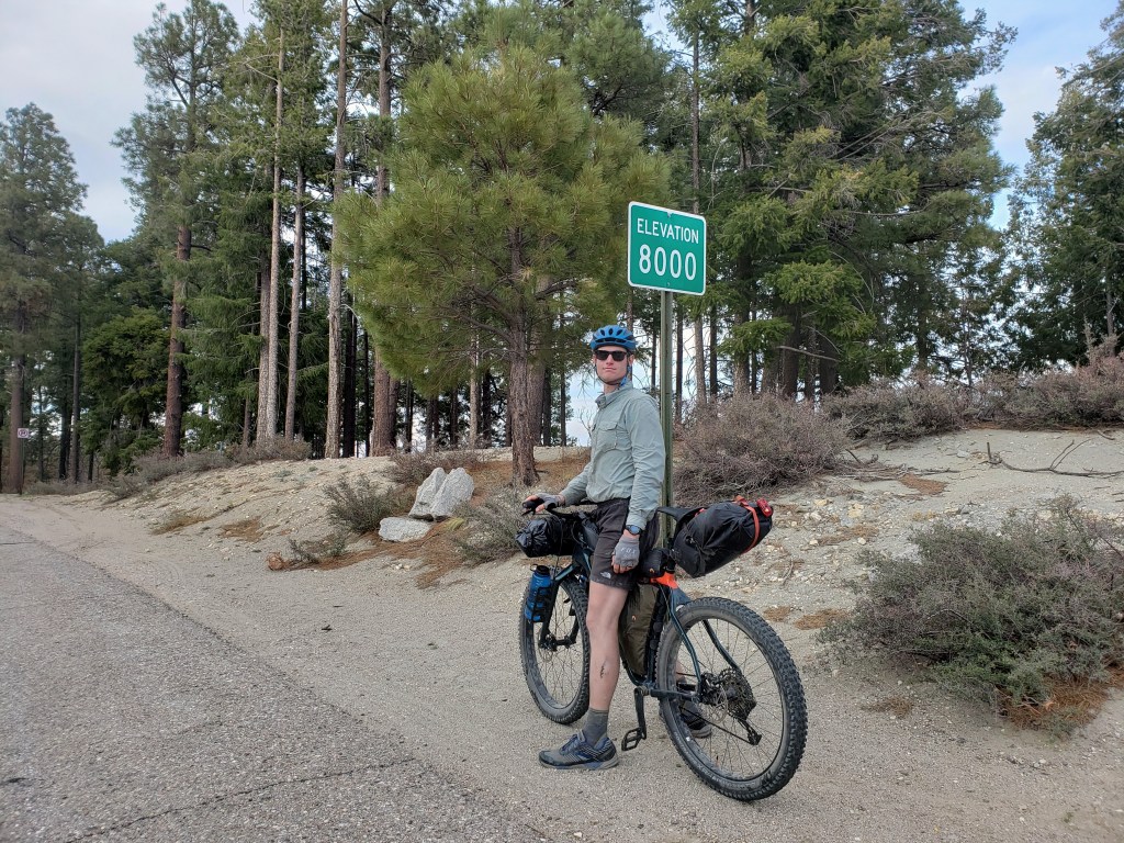 There were a couple developed campsites on the way up, but we were feeling strong and decided to do the whole climb in one day and continue onto dirt to begin the descent. By about 6:00 pm, we hit 8,000 ft which is a bit shy of the summit but all the route commanded of us. We hit the dirt and started the descent. But it wasn’t effortless. The road was flush with potholes, baseball sized rocks and other gravel, and stretches of washboard. We let a little air out of the tires, but the ride down was still a little rough. Just before dark, we found a stealth campsite for the night proud of our hard work for the day.