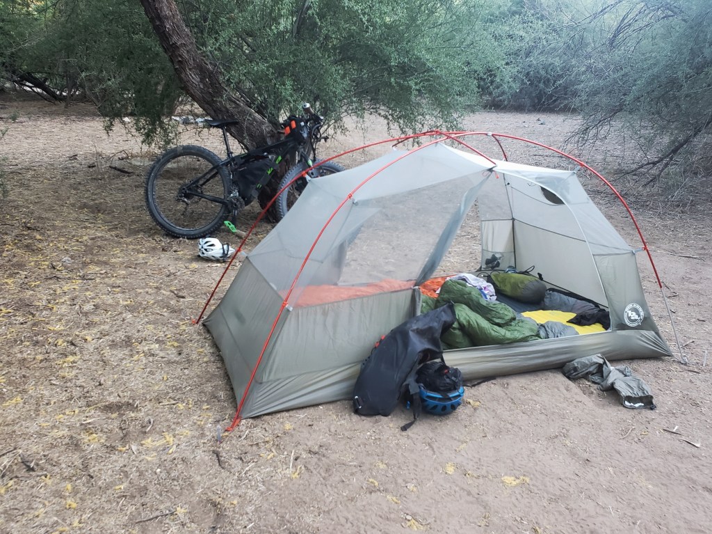 After snacking and resupplying, we continued riding another 10 beautiful miles to the trailhead. There was limited dispersed camping available, but thankfully we found a spot and setup camp.