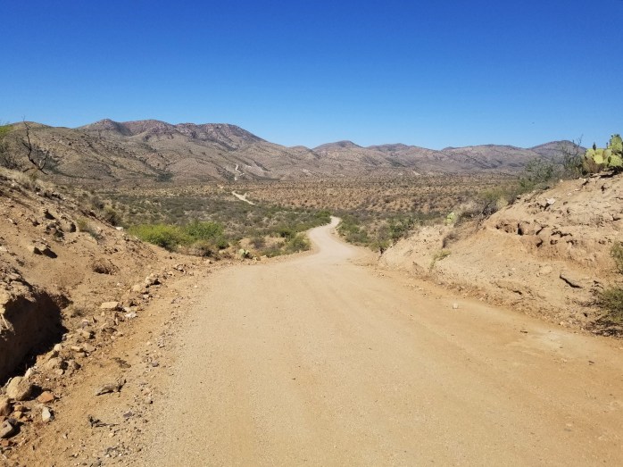 We started our day with a few miles on pavement before we turned onto dirt. We made a quick stop by Wind Spirit Community Center in Dripping Springs to stock up on water for the day. Our host Jerry showed us some really nice hospitality with fresh squeezed blood orange juice and all we could eat clementines straight from the tree. We took off around 8 with a huge climb ahead of us up the Pinal Mountains.