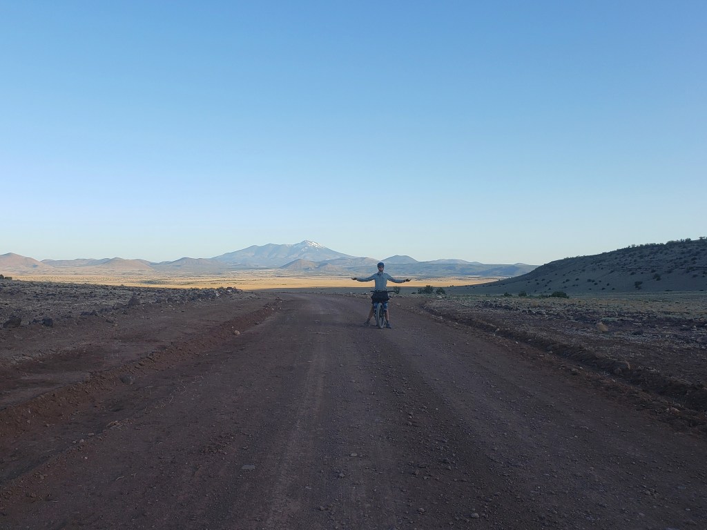 Onward through town, we headed up a canyon and the paved road once again turned to dirt, this time full of chunky rocks. Our pace wasn’t much faster than walking, but we managed to cycle up, up, up with incredible views and cheers from the tourists on jeep tours that passed us. We were grateful the trail mellowed out, but we still had dozens of gravel miles ahead of us. The afternoon dragged on as I eagerly awaited a shower in town, but I filled the time with podcasts and enjoyed the ride. Eventually we made it to Flagstaff thrilled for a day off.